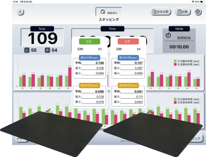 一定時間内に行える最大ステッピング数の計測で,アジリティ(敏捷性:agility)などの指標となります.