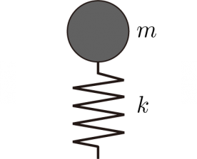 のような弾性係数kのバネを有する質量mの質点を考えます.