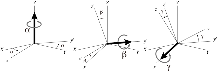 オイラー角による姿勢表現の物理的な意味や概要については,「オイラー角による姿勢表現」をご覧ください.