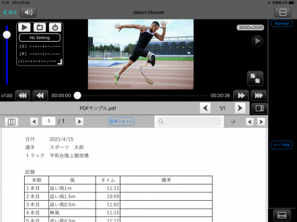 分析をまとめたテキストデータ、対戦相手データなど、PDFファイルを映像と同時に閲覧することができれば、スポーツ分析に対する効果を高めることができます。