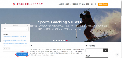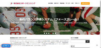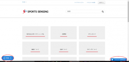 スポーツセンシング社 トップページの画面左下の「サポートマーク」をクリック。