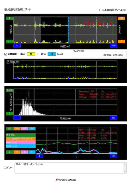 すぐに計測が始められる上に、筋電解析ソフトウェアで迅速にデータ確認まで行えます。