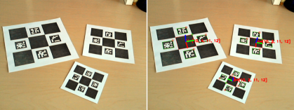 このように高速度撮影を行う選択肢は増えましたが,カメラ自体は2次元の情報しか取得できませんので複数のカメラを使用し,3次元座標を復元します.このため,各カメラの位置関係などを知るためにキャリブレーションが必要となりますが,古典的な方法としてDLT法(注2)などの方法が使用されます.正確なキャリブレーションを行うためには手間もかかりますが,OpenCV(注3)などでも使用されるチェスボードマーカやARマーカ(図2)などの利用により,簡便化する方法もあります.
